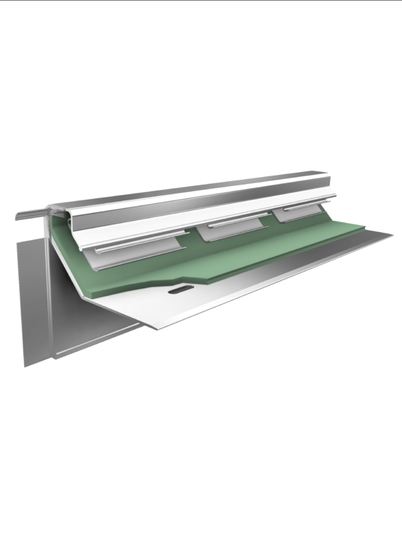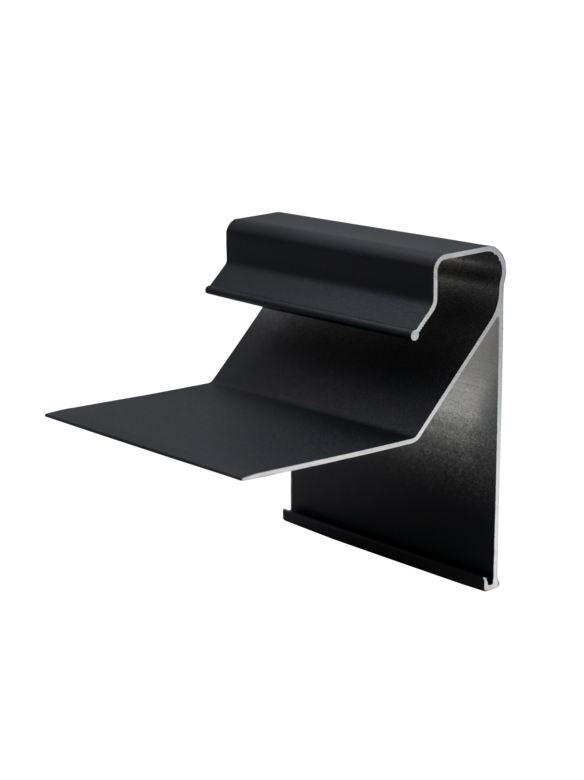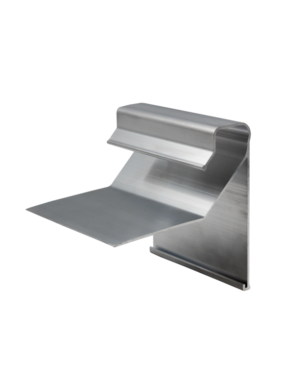 Die Serie SBK ist ein zweiteiliges Dachrandabschlussprofil aus stranggepresstem Aluminium. Der Anschlussstreifen der Dachabdichtung wird über 3 Klemmstücke pro Meter in die Blende eingeklemmt. Für gehobene ästhetische Ansprüche können entweder eine Eloxalbehandlung oder eine Kunststoffbeschichtung in allen RAL-Farben die Aluminium-Blenden optisch veredeln. Standardfarben: Anthrazit pearls, Silber pearls, Hausgrau pearls. Des weiteren erhältlich in allen RAL-Farbtönen oder Eloxalbehandlungen.